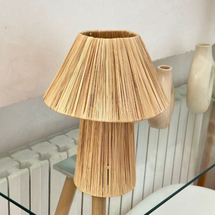 Éclairez votre maison avec style et originalité grâce à notre abat-jour en raphia fait à la main par des artisans marocains. La texture naturelle du raphia apporte une touche chaleureuse et authentique à votre intérieur. Chaque abat-jour est unique et ajoutera une ambiance unique à votre pièce