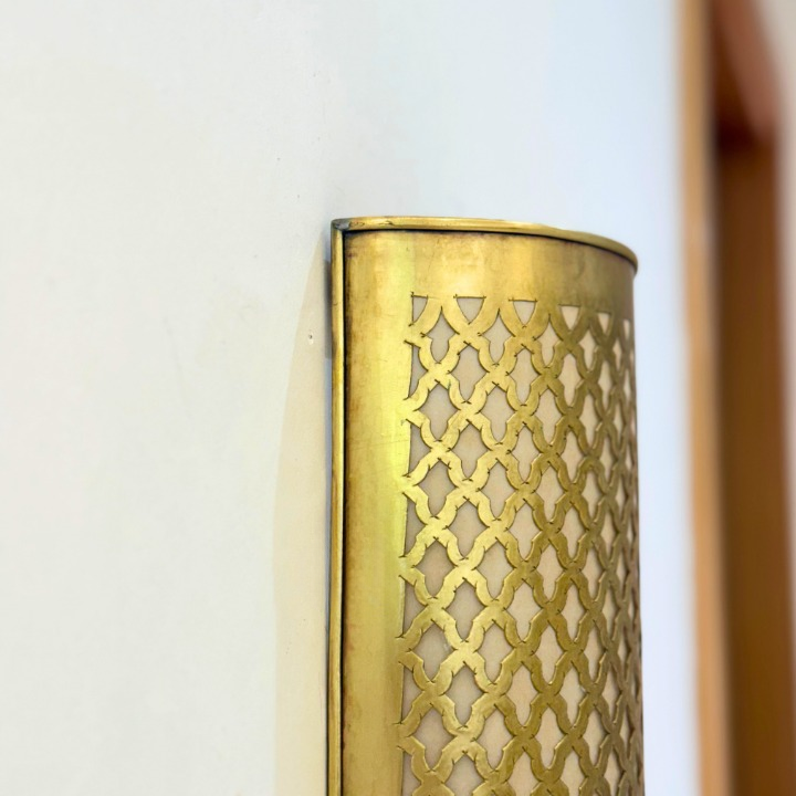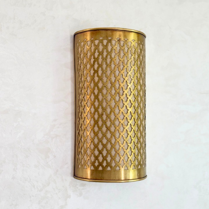 Cette applique murale artisanale en laiton incarne l’essence même de l’artisanat marocain, mêlant symbolique ancestrale et design intemporel. Ornée du motif Khmissa (ou main de Fatma), elle est bien plus qu’un simple luminaire : c’est un porte-bonheur mural, protecteur et décoratif.