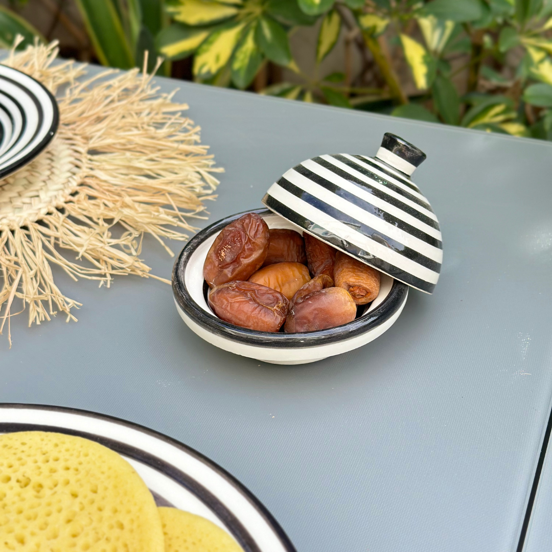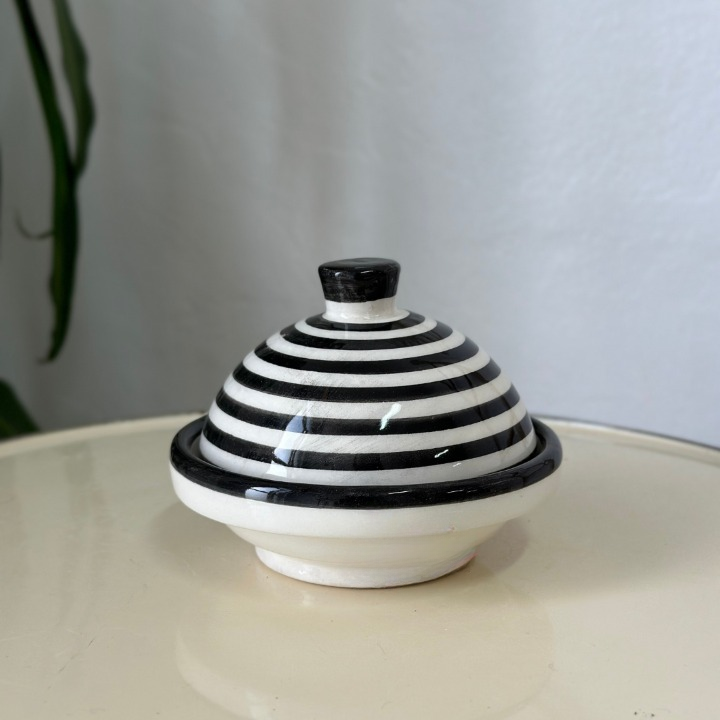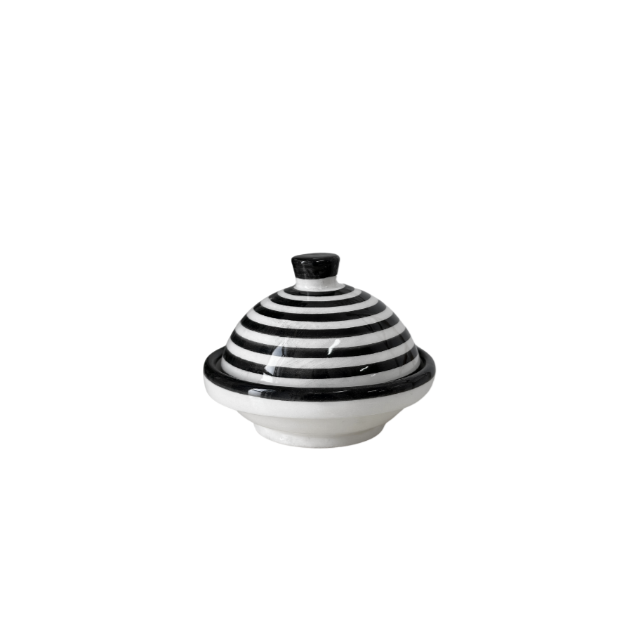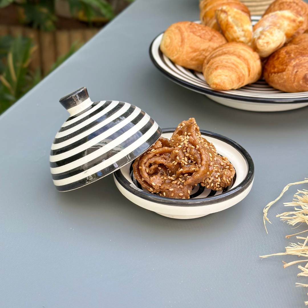Transformez votre routine de petit-déjeuner avec notre beurrier rayé noir! Profitez de chaque matinée avec une touche de style et de simplicité.