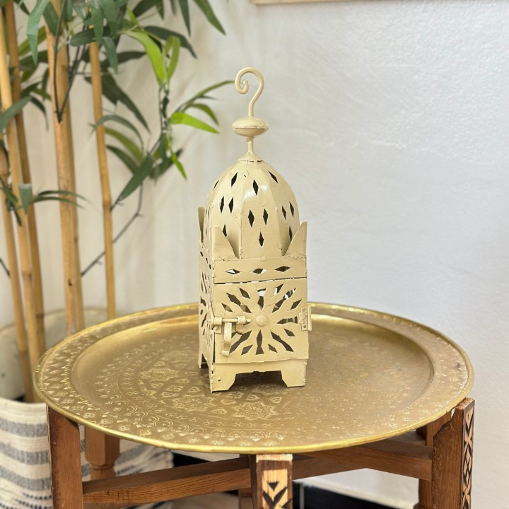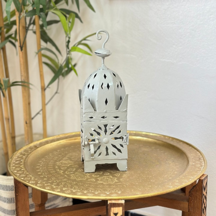 Que ce soit pour illuminer une pièce, décorer une terrasse ou sublimer une table lors d’un événement, cette lanterne diffuse des jeux de lumière captivants, créant une ambiance magique et orientale. Idéale pour une décoration ethnique, bohème chic, ou même contemporaine, elle est parfaite pour les amateurs d'objets artisanaux qui recherchent de l'authenticité et de l'élégance.
