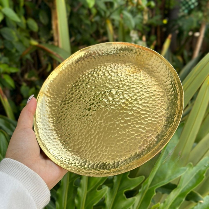 Offrez avec élégance ! Ce plateau martelé doré en cuivre est la pièce finale parfaite à votre décoration. Son effet martelé apporte une touche raffinée et intemporelle à votre pièce, vous pouvez le disposer sur une table, un buffet ou une cheminée. Une parure charmante et raffinée qui saura mettre en valeur votre déco !