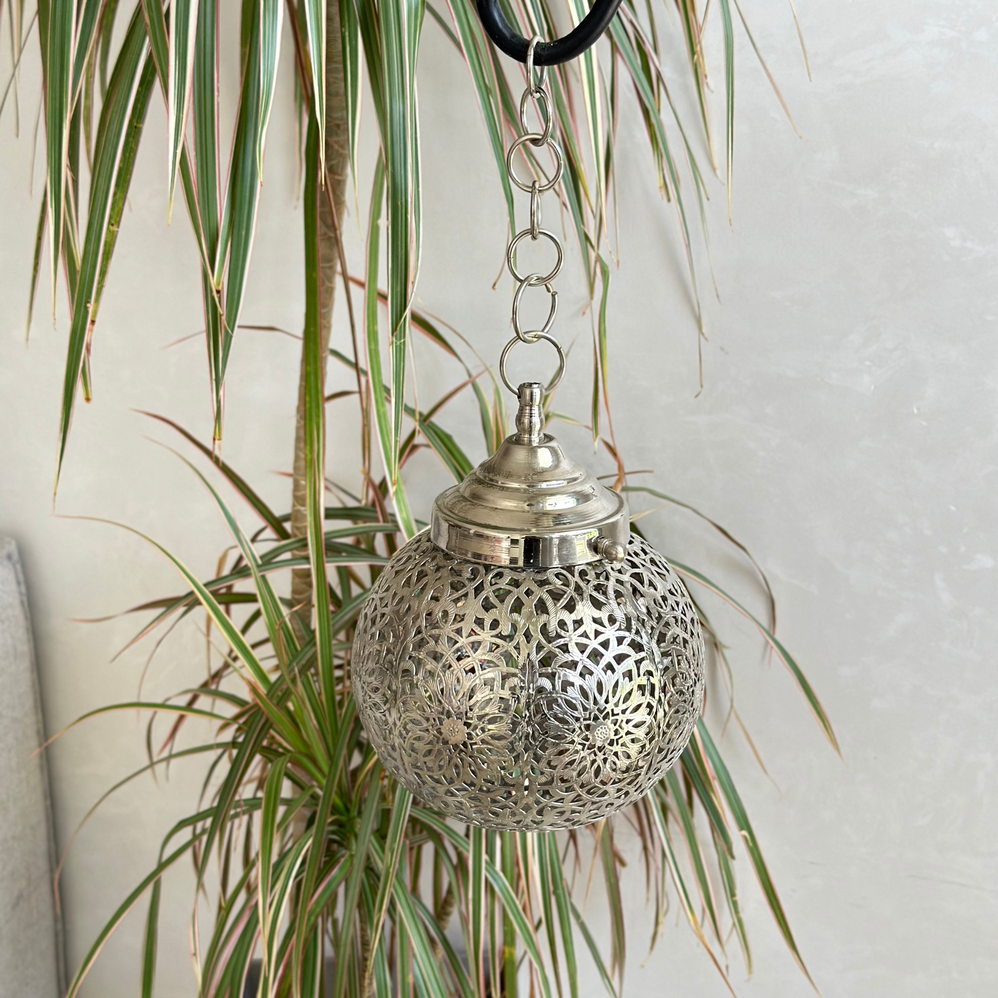 Suspension artisanale en laiton boule argentée