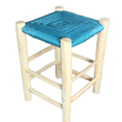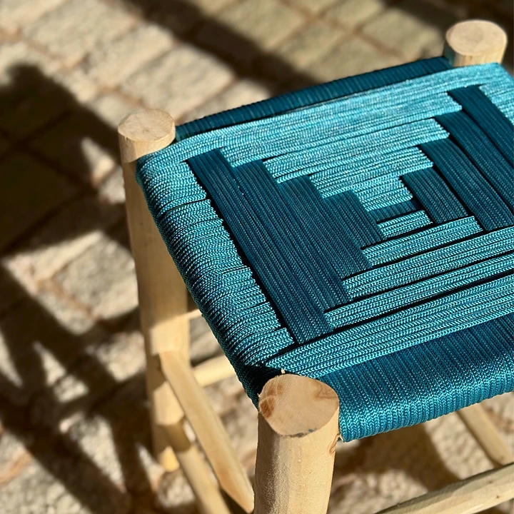 Tabouret artisanal Tazrout bleu canard en bois et Kittane tressé