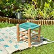 Tabouret artisanal Tazrout en bois et Kittane bleu turquoise