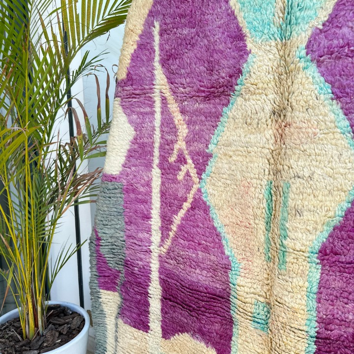 Découvrez le magnifique Tapis Berbère Marocain Azilal, une œuvre en pure laine avec des motifs pastels. Inspiré par la région, où ce savoir-faire artisanal se transmet de génération en génération, chaque pièce est une création unique, entièrement confectionnée à la main.