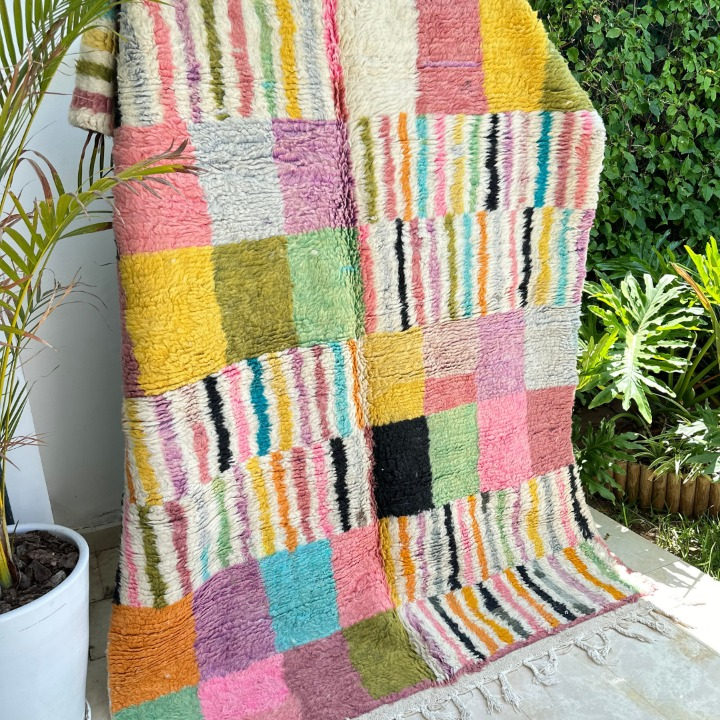 Tapis berbère Azilal coloré 100% laine de mouton 2,34m/1,72m