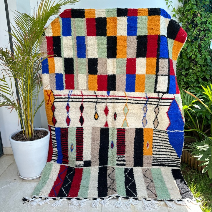 Découvrez le magnifique Tapis Berbère Marocain Azilal, une œuvre en pure laine avec des motifs colorés. Inspiré par la région, où ce savoir-faire artisanal se transmet de génération en génération, chaque pièce est une création unique, entièrement confectionnée à la main.
