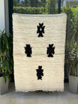 Tapis berbère Beni Ouarain crème et noir 100% laine de mouton - 152cm / 104cm