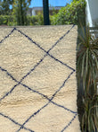 Tapis berbère Beni Ouarain crème à losanges bleu 100% laine de mouton - 130cm / 145cm