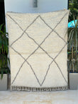 Tapis berbère Beni Ouarain crème à losanges gris 100% laine de mouton - 162cm / 114cm