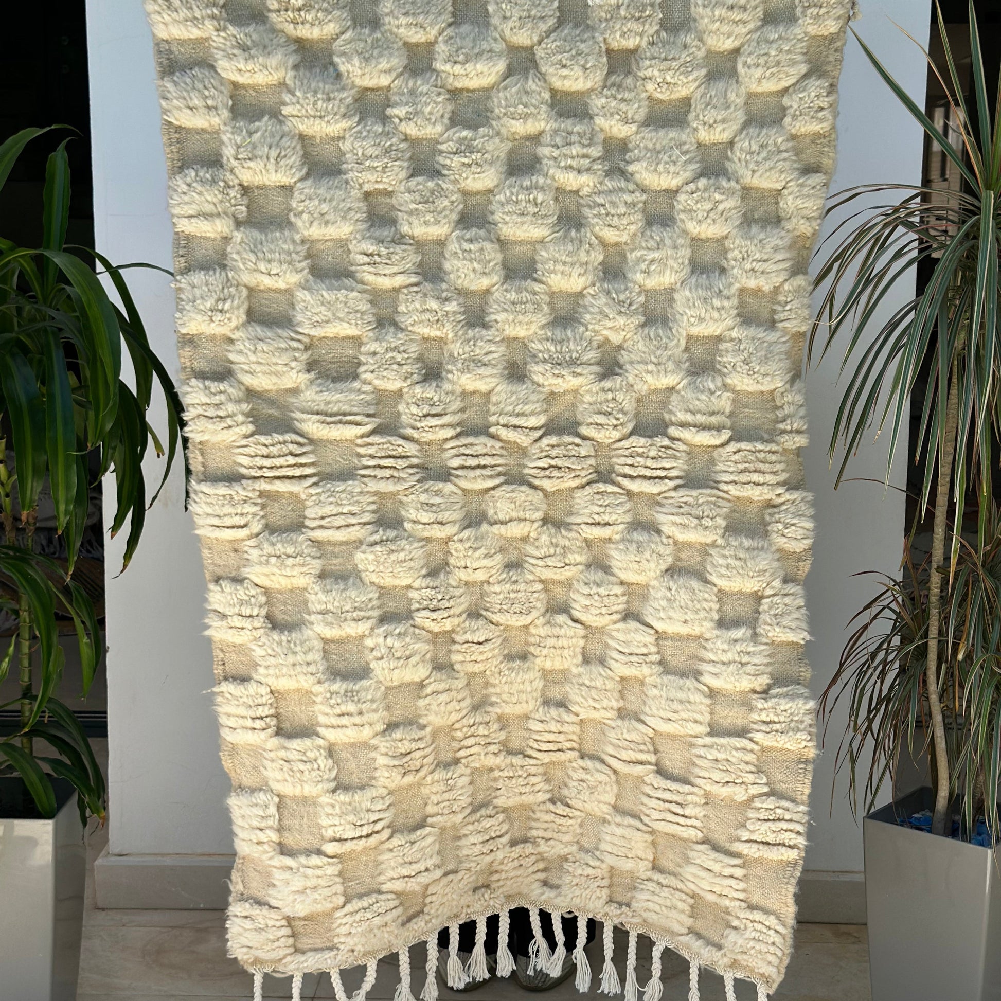 Tapis berbère Beni Ouarain damier crème 100% laine de mouton - 148cm / 98cm