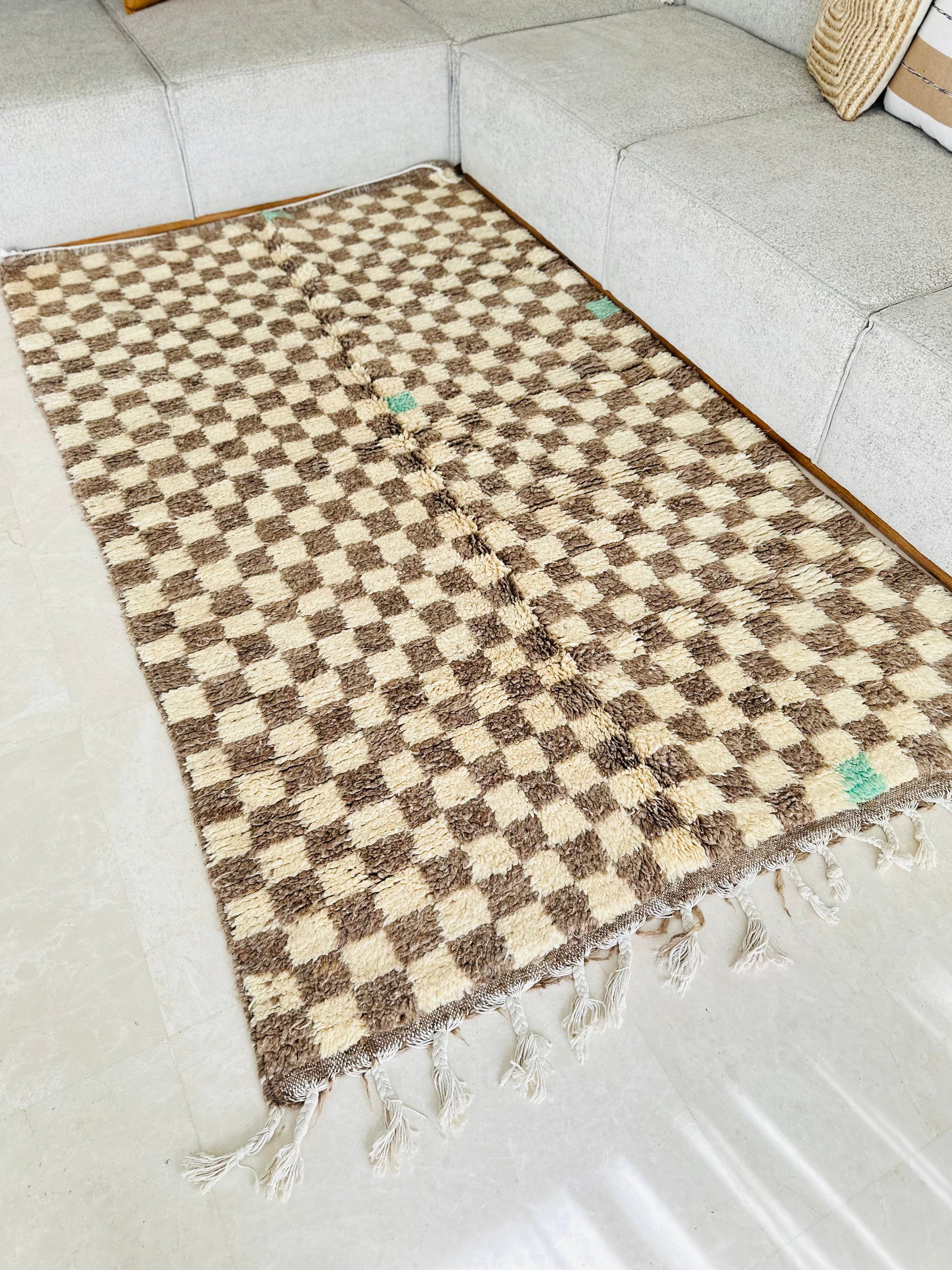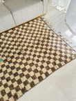 Tapis berbère Beni Ouarain damier taupe 100% laine de mouton - 2,42m / 1,62m
