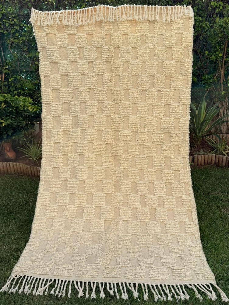 Tapis Berbère Azilal 100% Crème en Laine De Mouton 2,45m /1,37m
