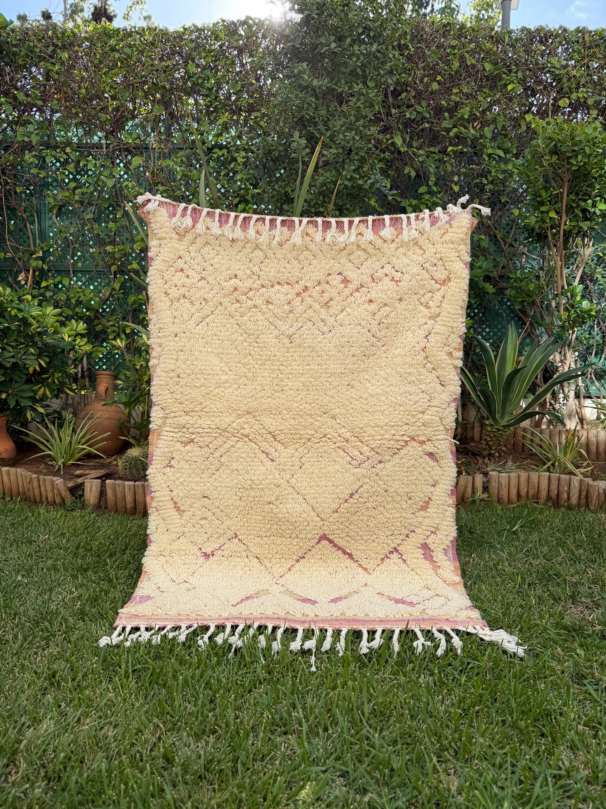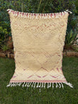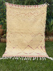 Tapis Berbère Azilal 100% Crème Rose en Laine De Mouton 1,48m /1,01m