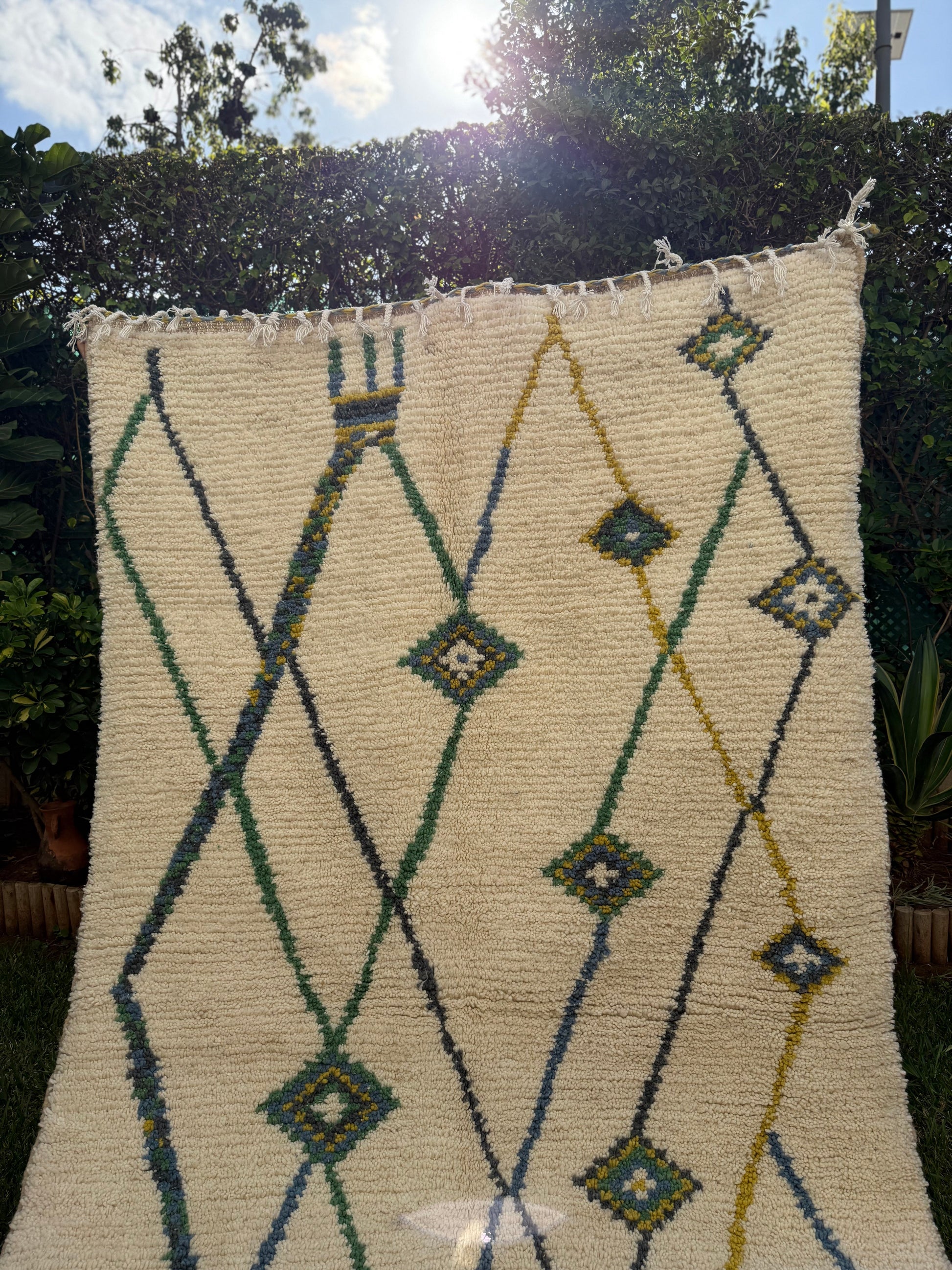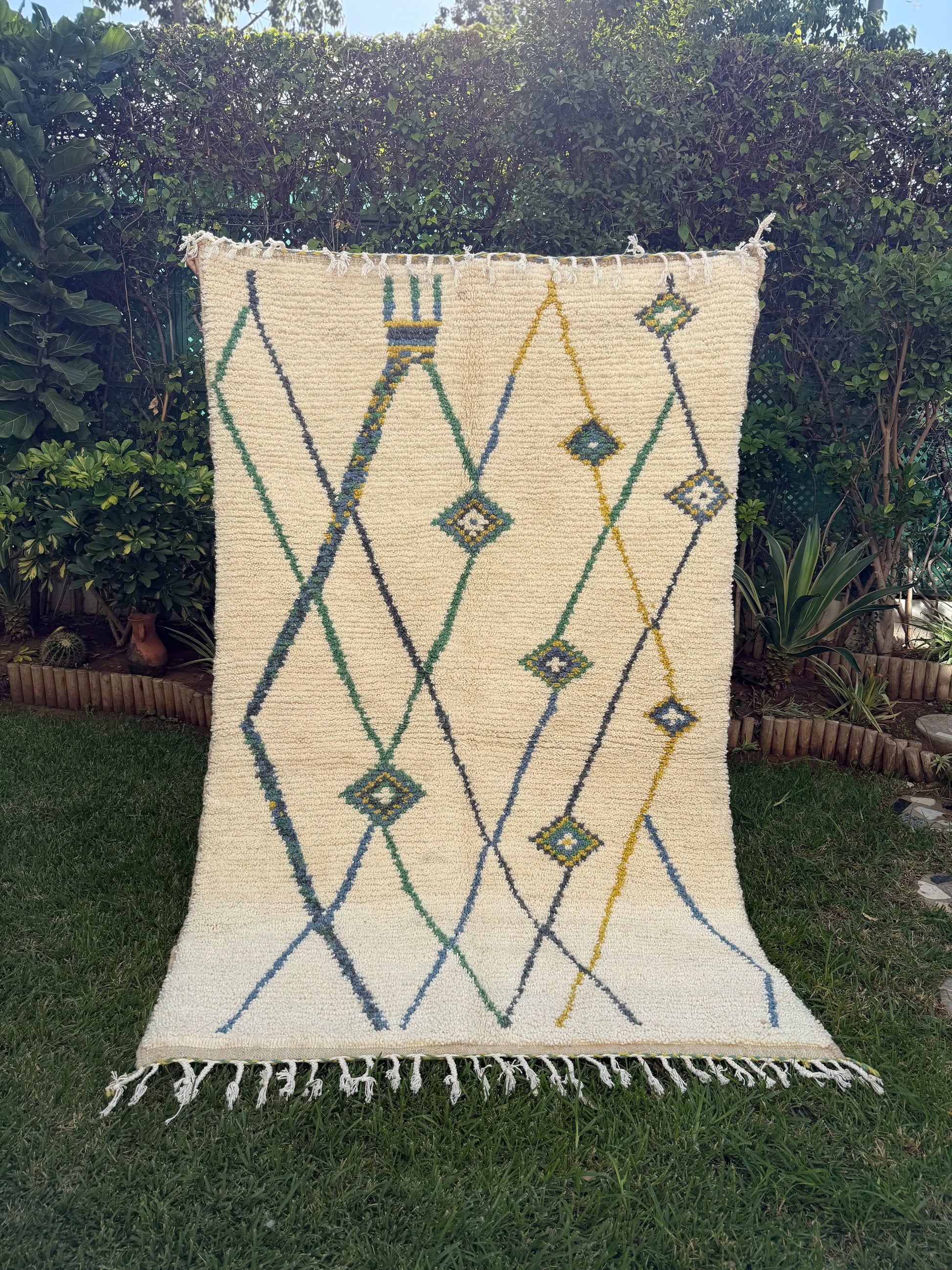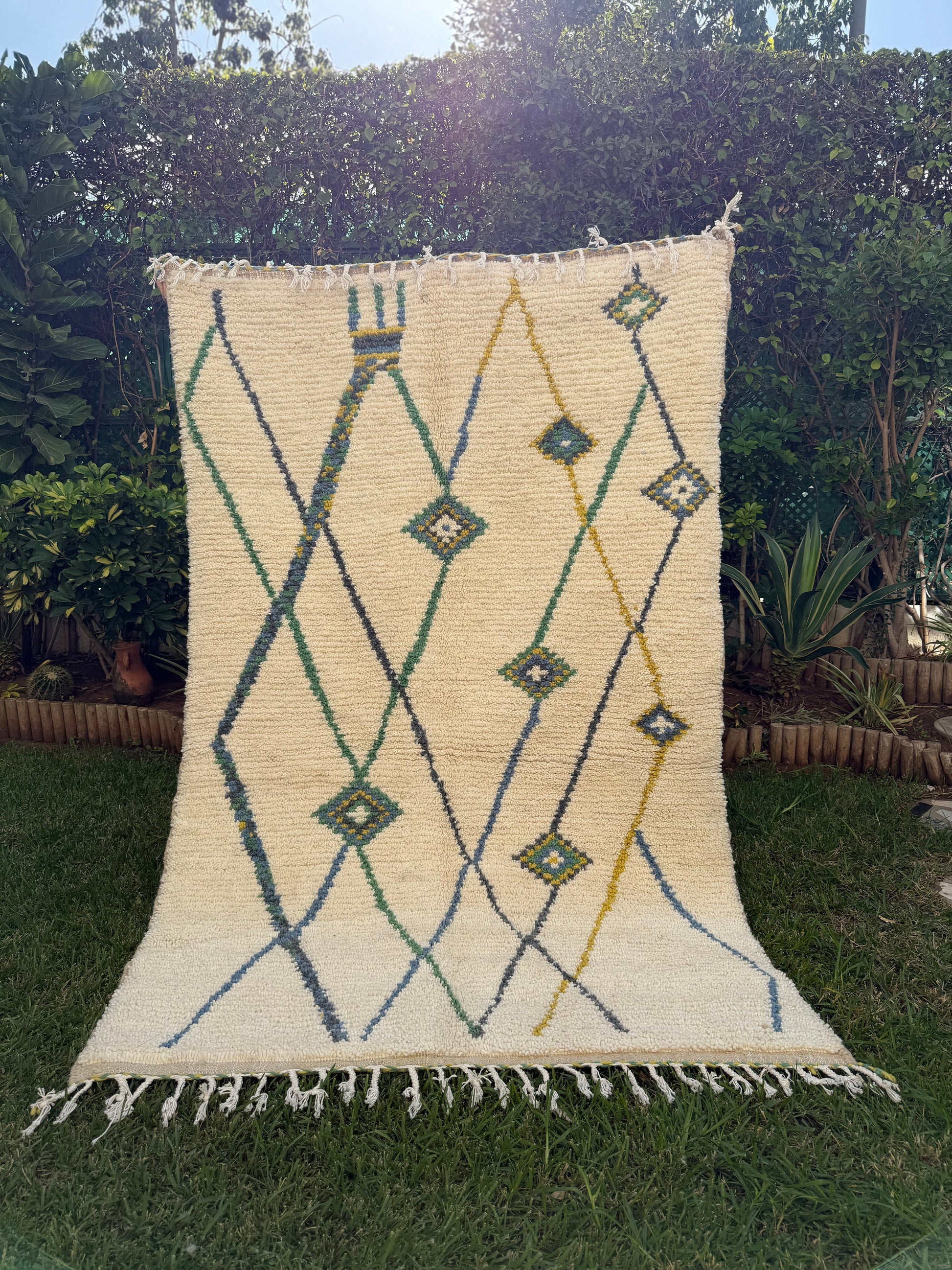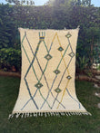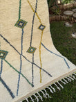 Tapis Berbère Azilal 100% Crème, vert en Laine De Mouton- 2,30m/ 1,48m