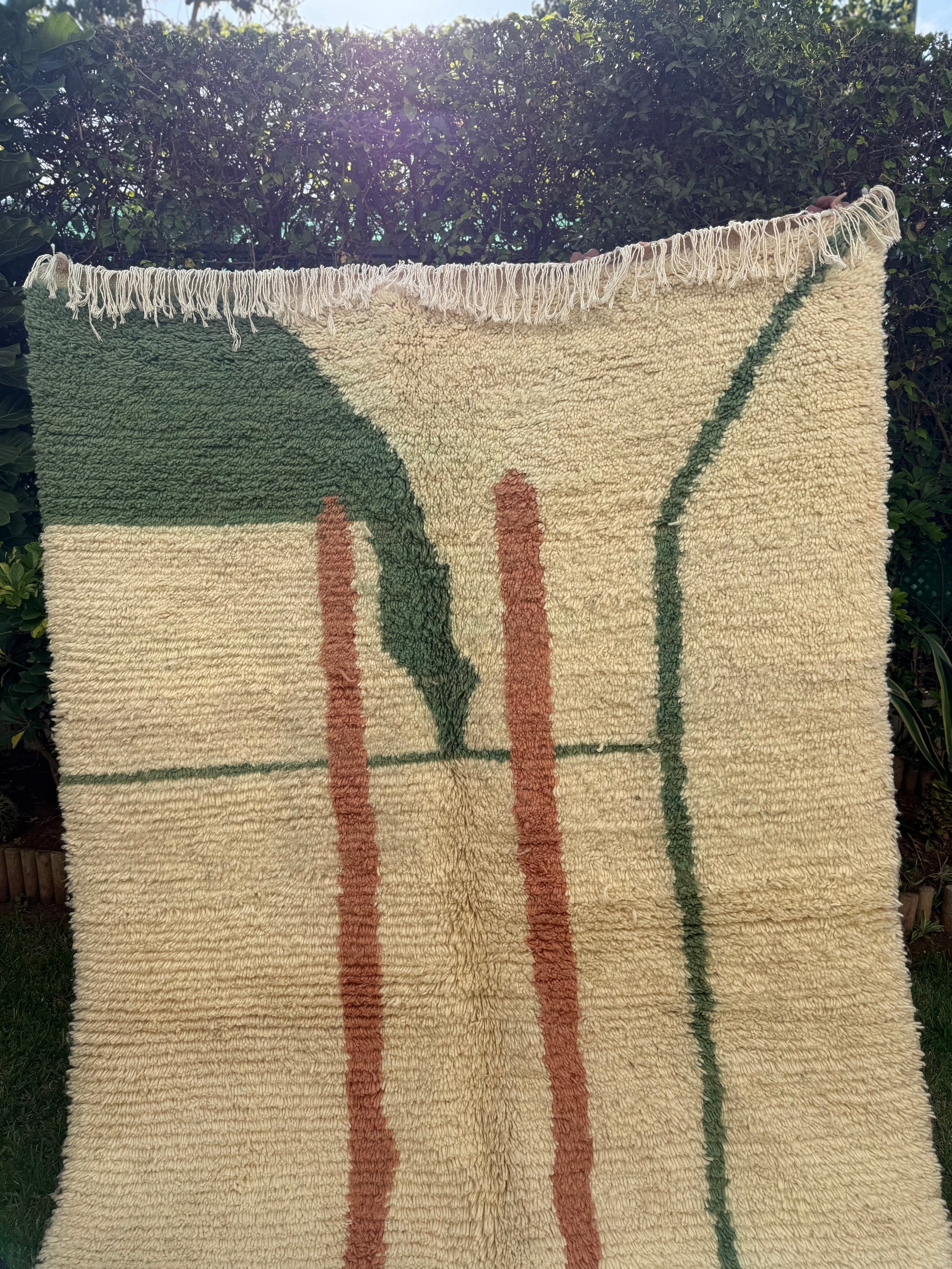Apportez chaleur, authenticité et élégance à votre intérieur avec ce tapis berbère Azilal 100 % laine de mouton, entièrement tissé à la main au Maroc selon un savoir-faire ancestral. Sa teinte multicolore naturelle, douce et lumineuse, s’intègre harmonieusement dans tous les styles d’intérieur : bohème chic, minimaliste, contemporain ou esprit riad.