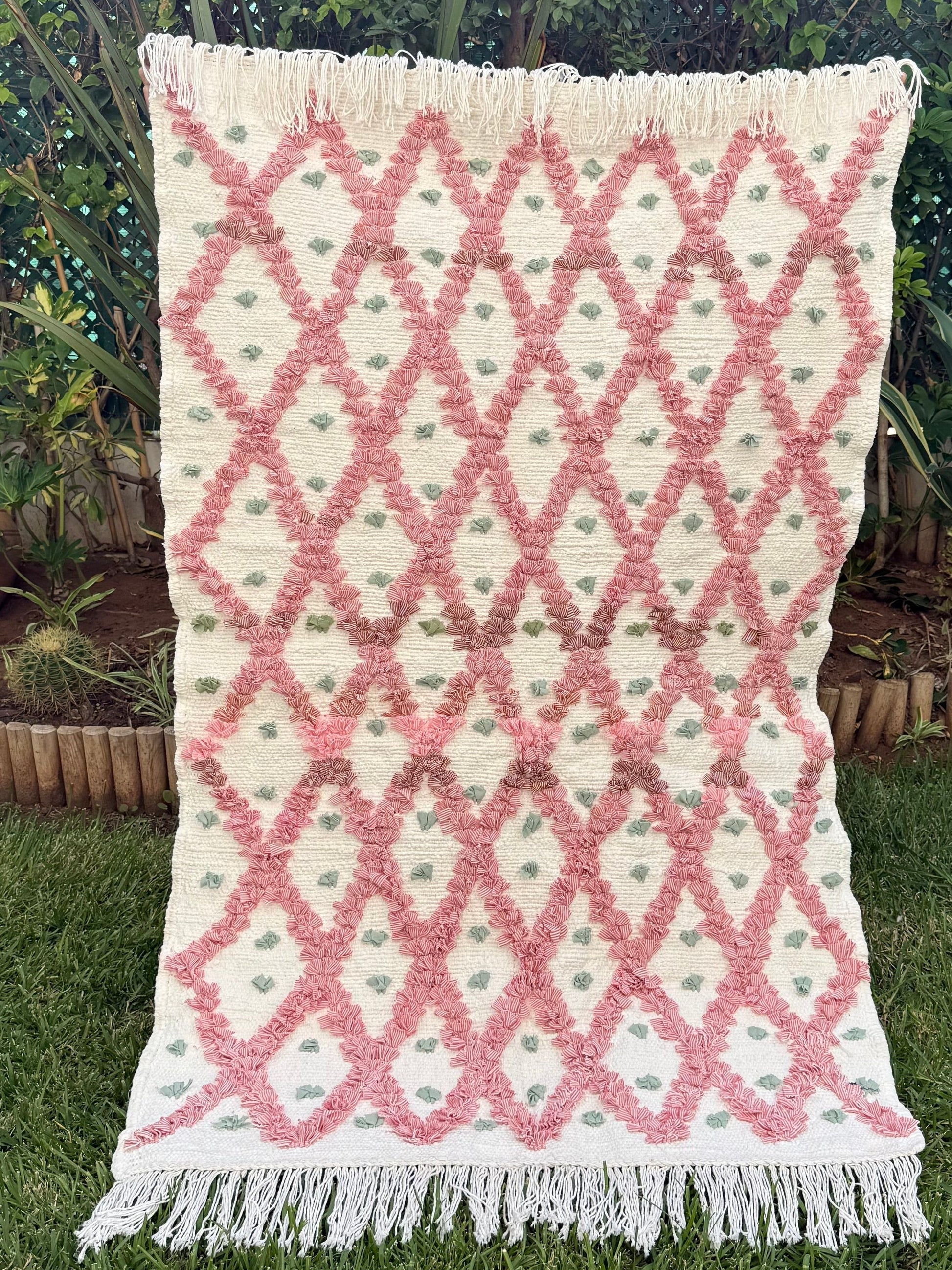 Tapis Berbère Azilal 100% Rose en Laine De Mouton 1,42m /93cm