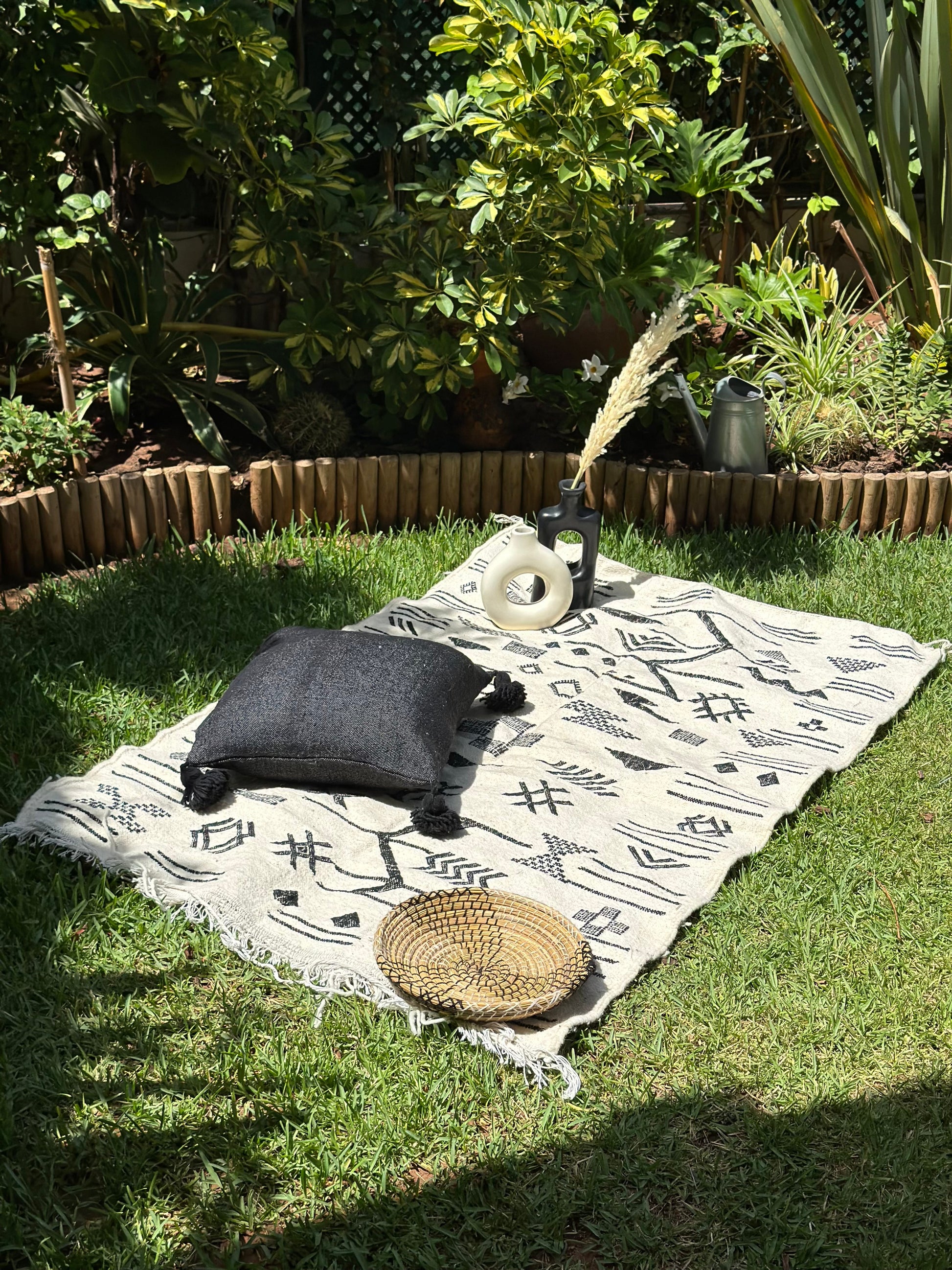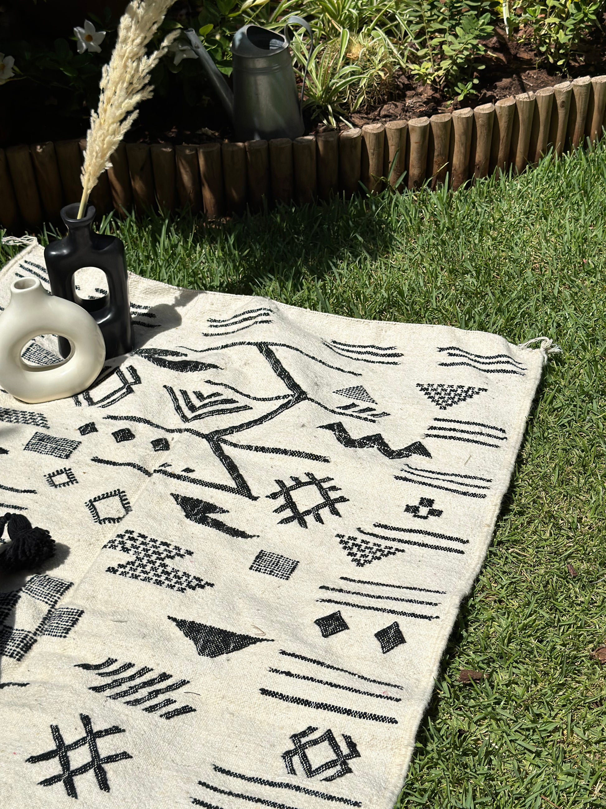 Le tapis Hanbal en coton de 154cm/102cm est une pièce d’artisanat Marocain authentique, tissée à la main selon des techniques ancestrales. Son motif amazigh traditionnel, soigneusement travaillé en turquoise, reflète l'héritage culturel des tribus berbères du Maroc. Chaque symbole est porteur de sens, évoquant des thèmes comme la protection, la prospérité et l’harmonie. L’utilisation du coton garantit à la fois douceur et résistance, tandis que la finesse du tissage confère au tapis une élégance intemporelle. Ce Hanbal s’intègre parfaitement dans un intérieur moderne ou classique, apportant une touche d’authenticité et de caractère artisanal.