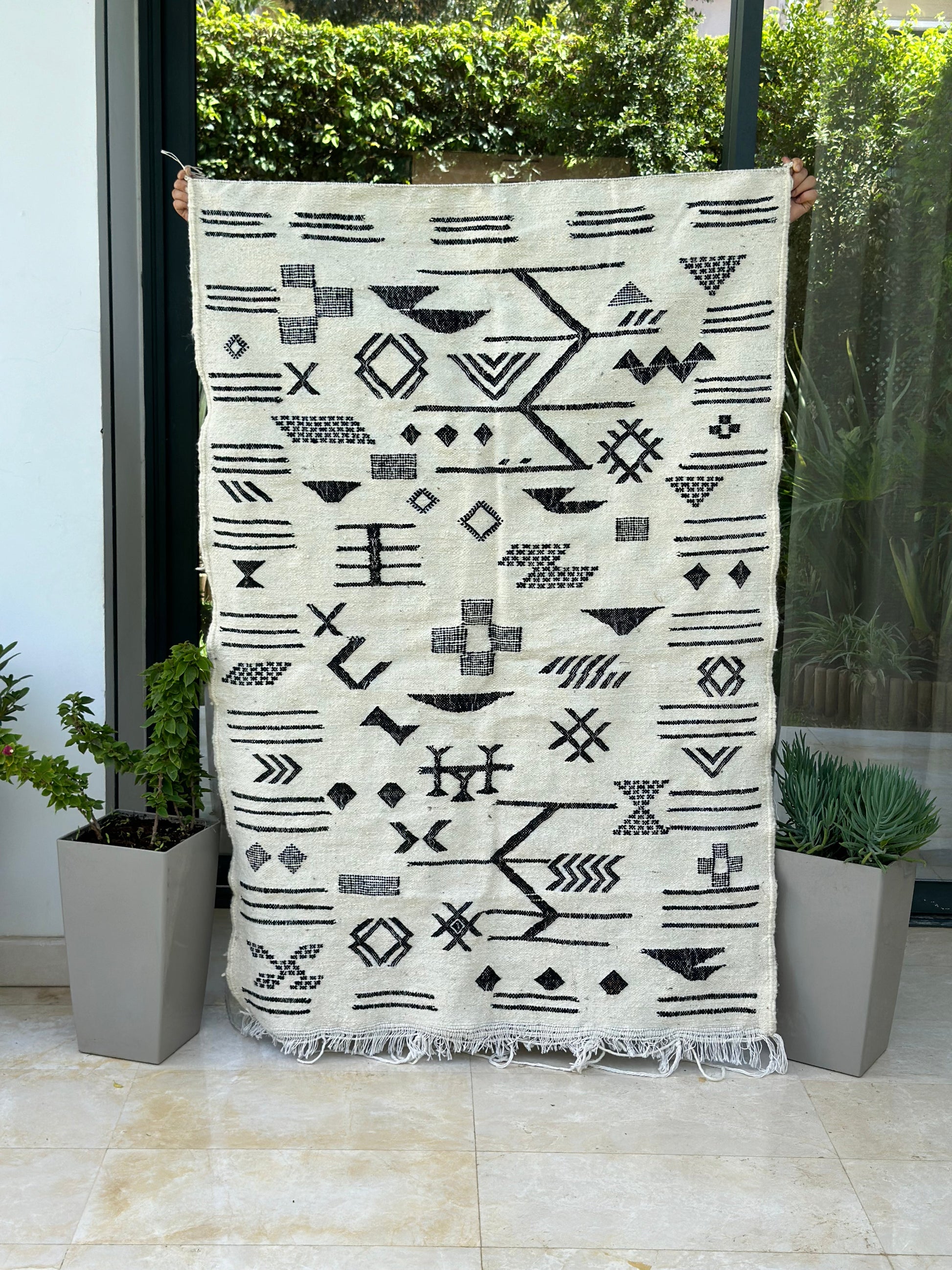 Tapis berbère Hanbal noir amazigh 100% coton - 154cm/102cm