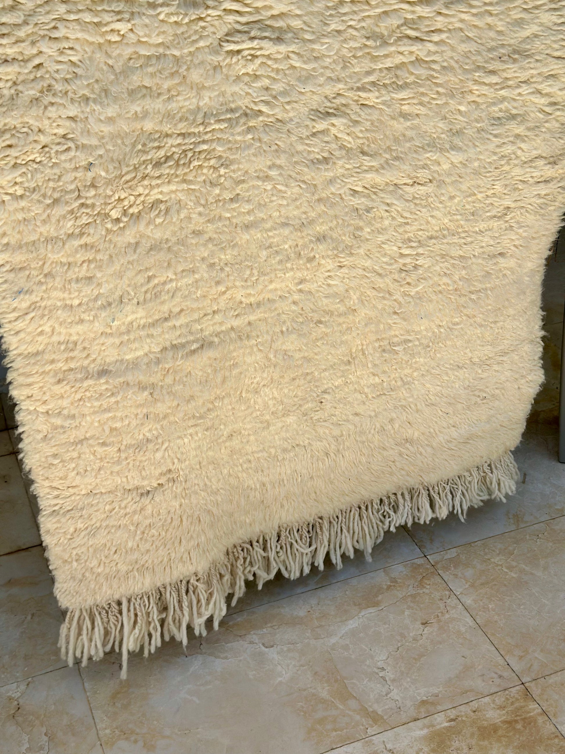 Découvrez ce Tapis Mrirt, une pièce d'exception venue tout droit de la région de Khenifra au Maroc. Fabriqué à la main par des femmes talentueuses, ce tapis est confectionné en pure laine, garantissant une douceur et une durabilité incomparables.