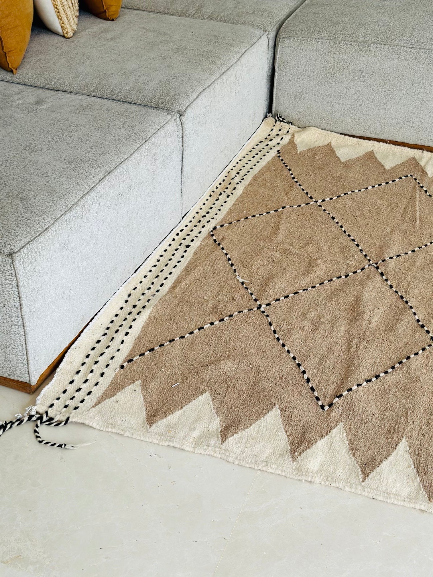 Découvrez notre somptueux tapis Zanafi, un chef-d'œuvre de l'artisanat marocain. Tissé à la main avec une précision méticuleuse, chaque détail de ce tapis raconte une histoire unique. Les motifs géométriques complexes et les couleurs riches ajoutent une touche de chaleur et d'élégance à votre espace.