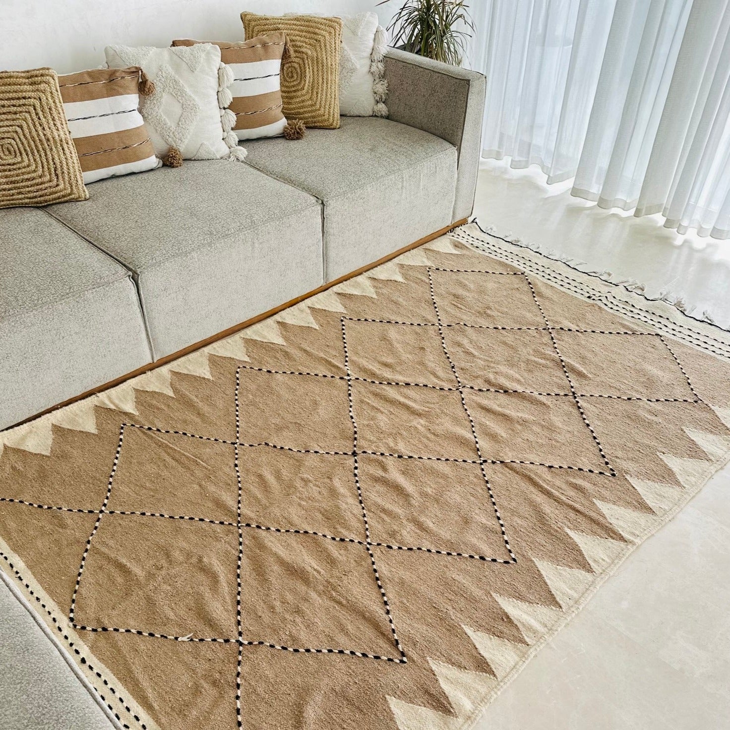 Tapis artisanal Zanafi beige 100% coton - 2,87m / 1,96m