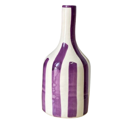 Vase artisanal bouteille mauve rayé