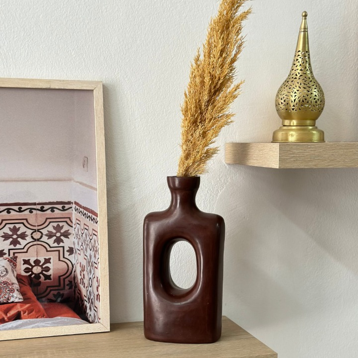 Disponible dans plusieurs teintes (terracotta, blanc, noir, bleu profond, beige…), le vase Riad permet de personnaliser votre ambiance selon vos goûts. Il est idéal pour accueillir des fleurs séchées, des herbes de pampa ou des tiges graphiques.