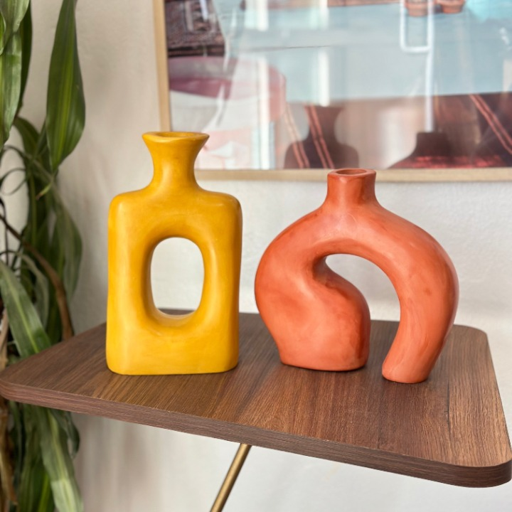 Avec son design épuré et ses finitions mates, le vase Riad s’intègre parfaitement dans une décoration moderne, bohème chic, méditerranéenne ou wabi-sabi. Son style à la fois brut et raffiné en fait un objet décoratif polyvalent : posé sur une console, une table basse ou une étagère, il devient un véritable accent design dans votre intérieur.