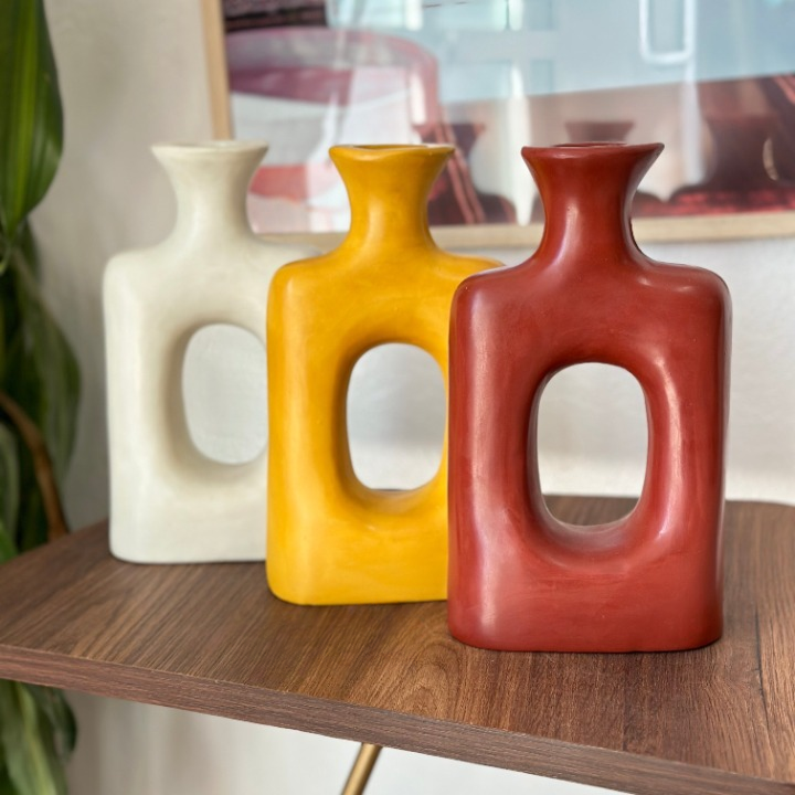 Le vase Riad mat incarne l’élégance sobre et la douceur des formes artisanales. Conçu en céramique mate et disponible en plusieurs couleurs naturelles ou pigmentées, ce vase décoratif séduit par sa silhouette équilibrée, inspirée des décors marocains traditionnels revisités dans un esprit contemporain.
