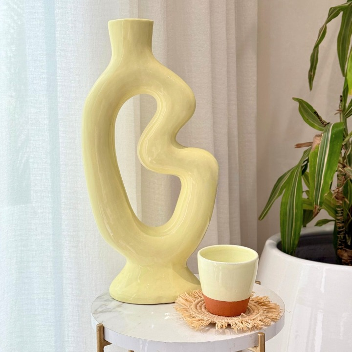Célébrez la culture et l'artisanat marocain avec notre Vase Anarouz jaune pâle ou rose nude en céramique fait main. Conçu par des artisans locaux, ce vase ajoute une touche d'élégance à votre salon ou votre chambre à coucher. Laissez-vous séduire par la beauté et la qualité de l'artisanat marocain avec ce magnifique vase.